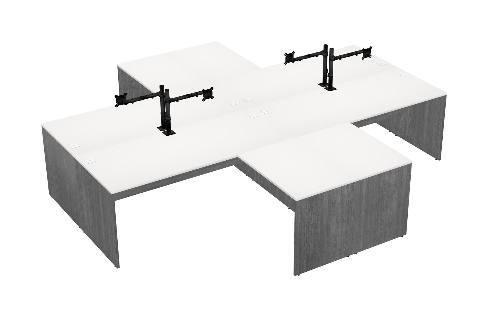 Bureaux Blancs En L Avec Bras D'écran Noir (bras Simple)