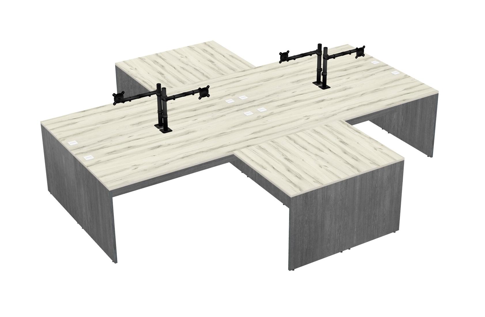Bureaux Heinne Holz Quad En L Avec Bras D'écran Noir (bras Simple)