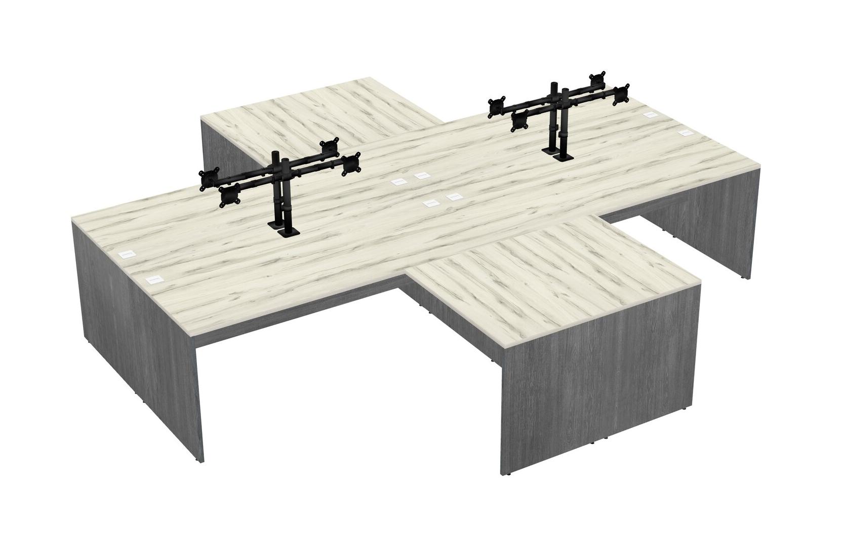 Bureaux Heinne Holz Quad En L Avec Bras D'écran Noir (bras Doubles)