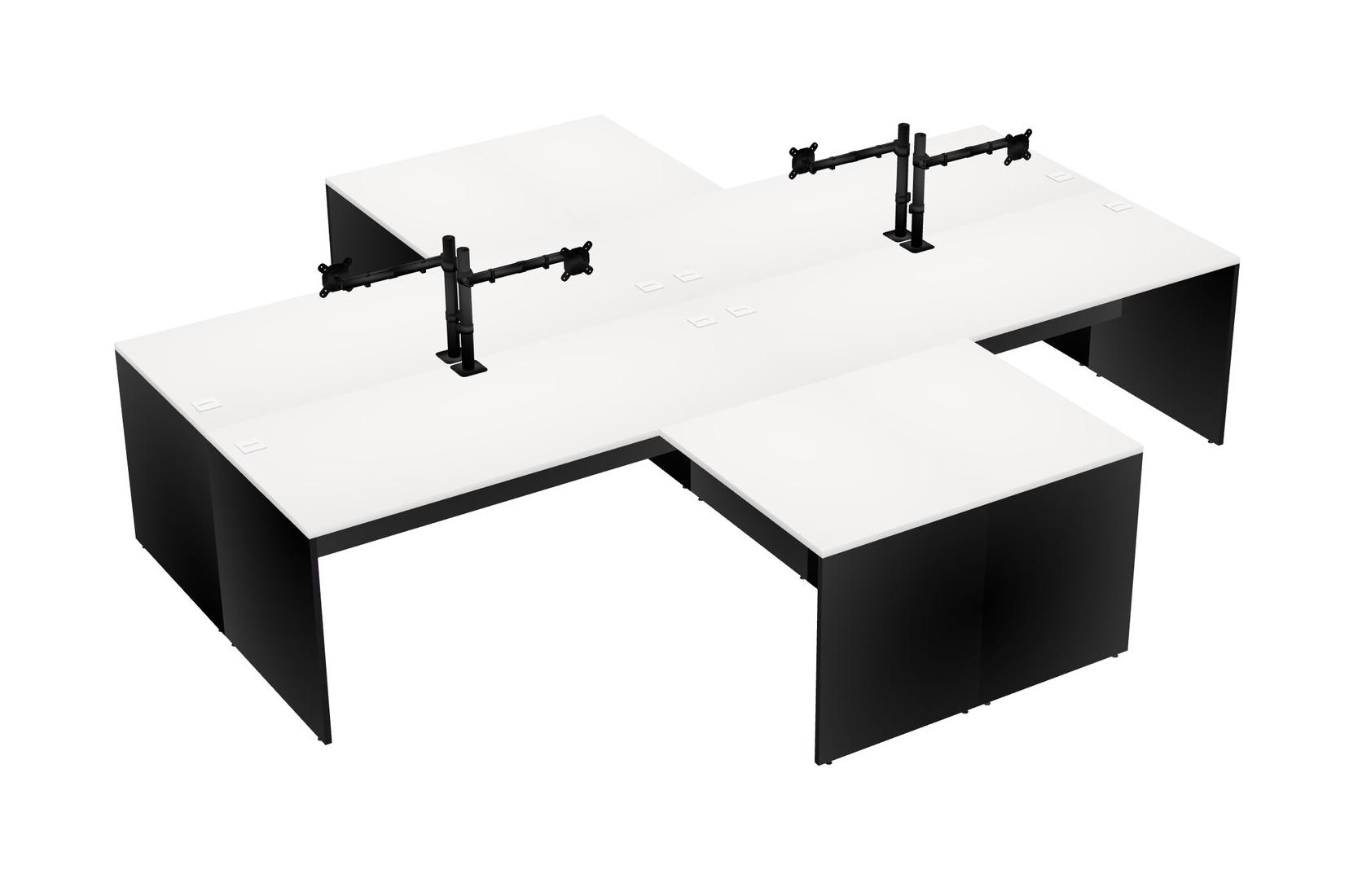 Bureaux Blancs En L Avec Bras D'écran Noir (bras Simple)