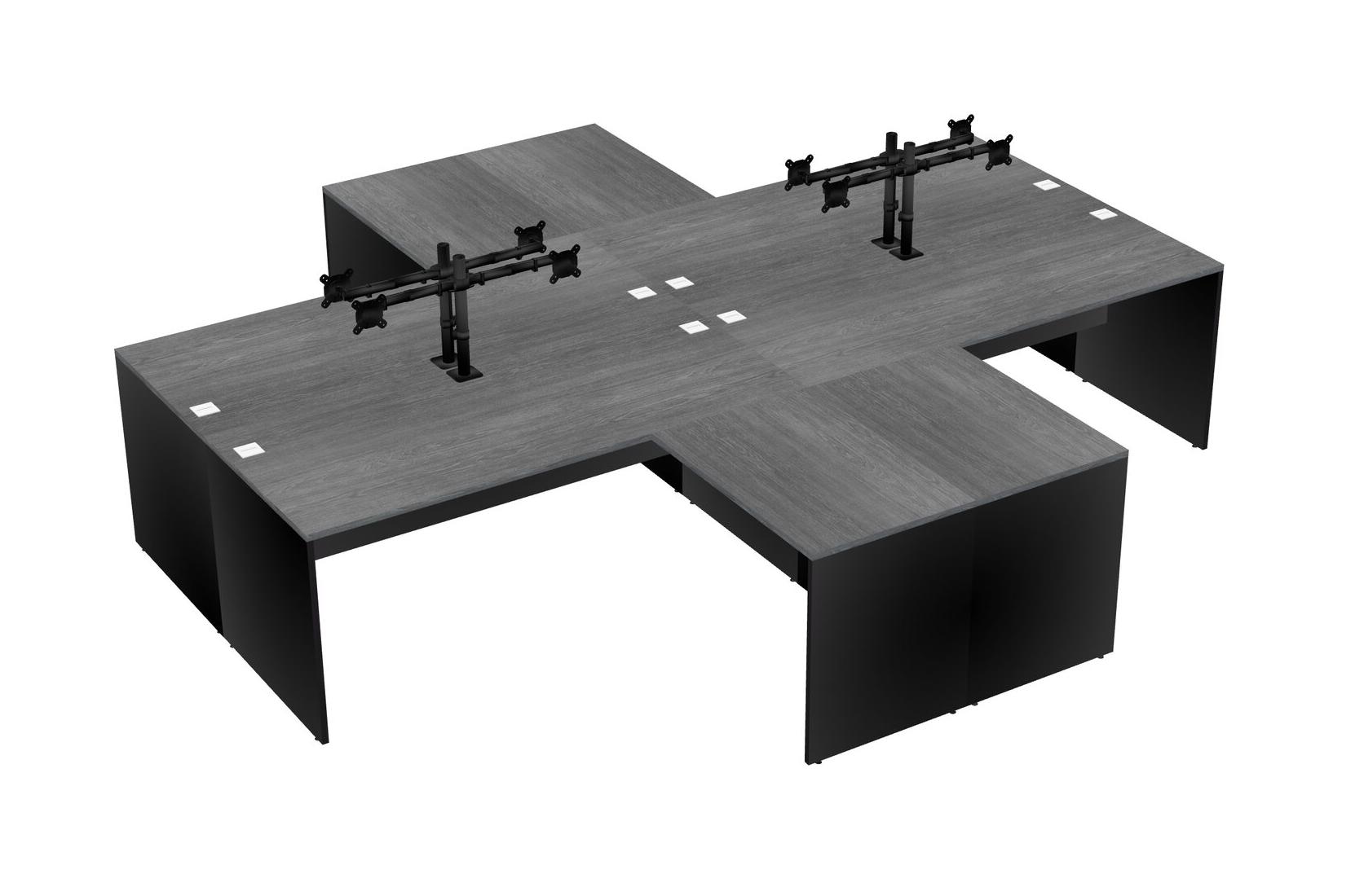 Bureaux Gris En Forme De L Avec Bras D'écran Noir (bras Doubles)