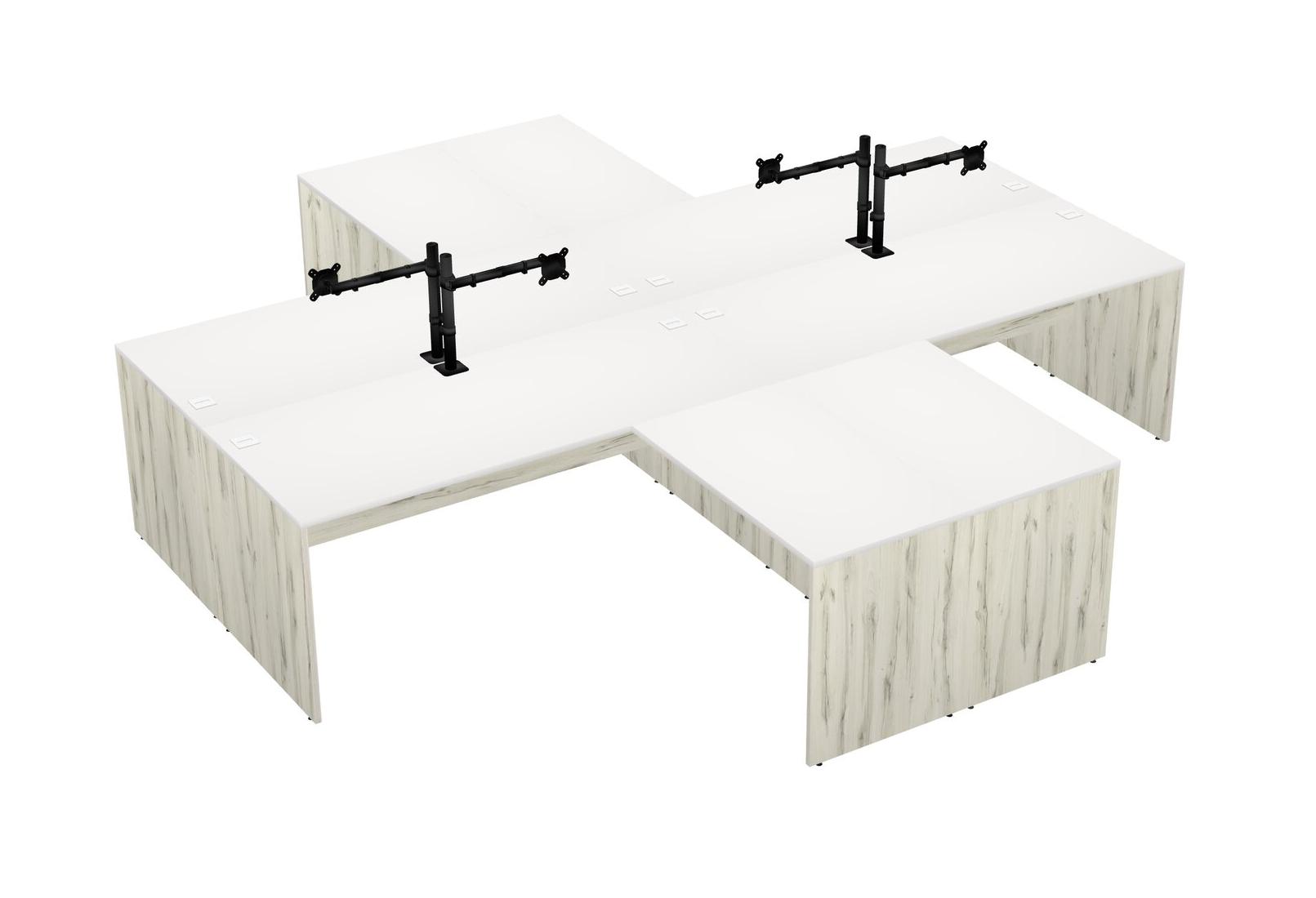 Bureaux Blancs En L Avec Bras D'écran Noir (bras Simple)