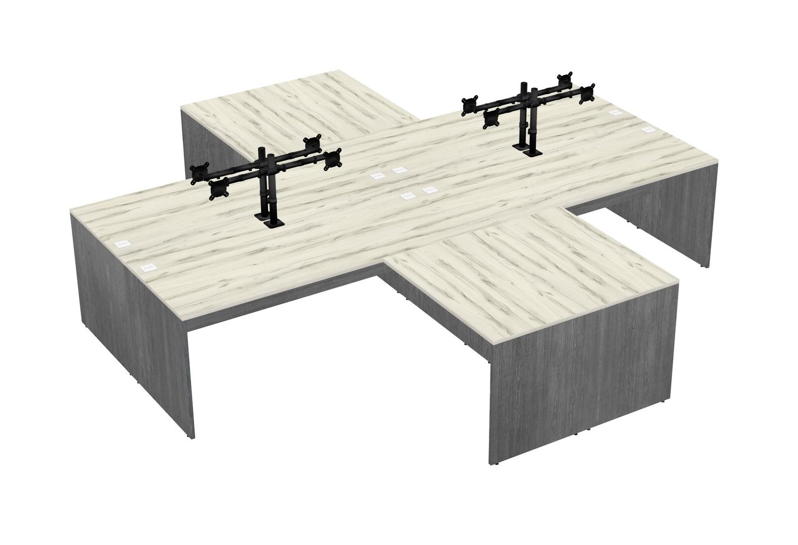 Bureaux Heinne Holz Quad En L Avec Bras D'écran Noir (bras Doubles)
