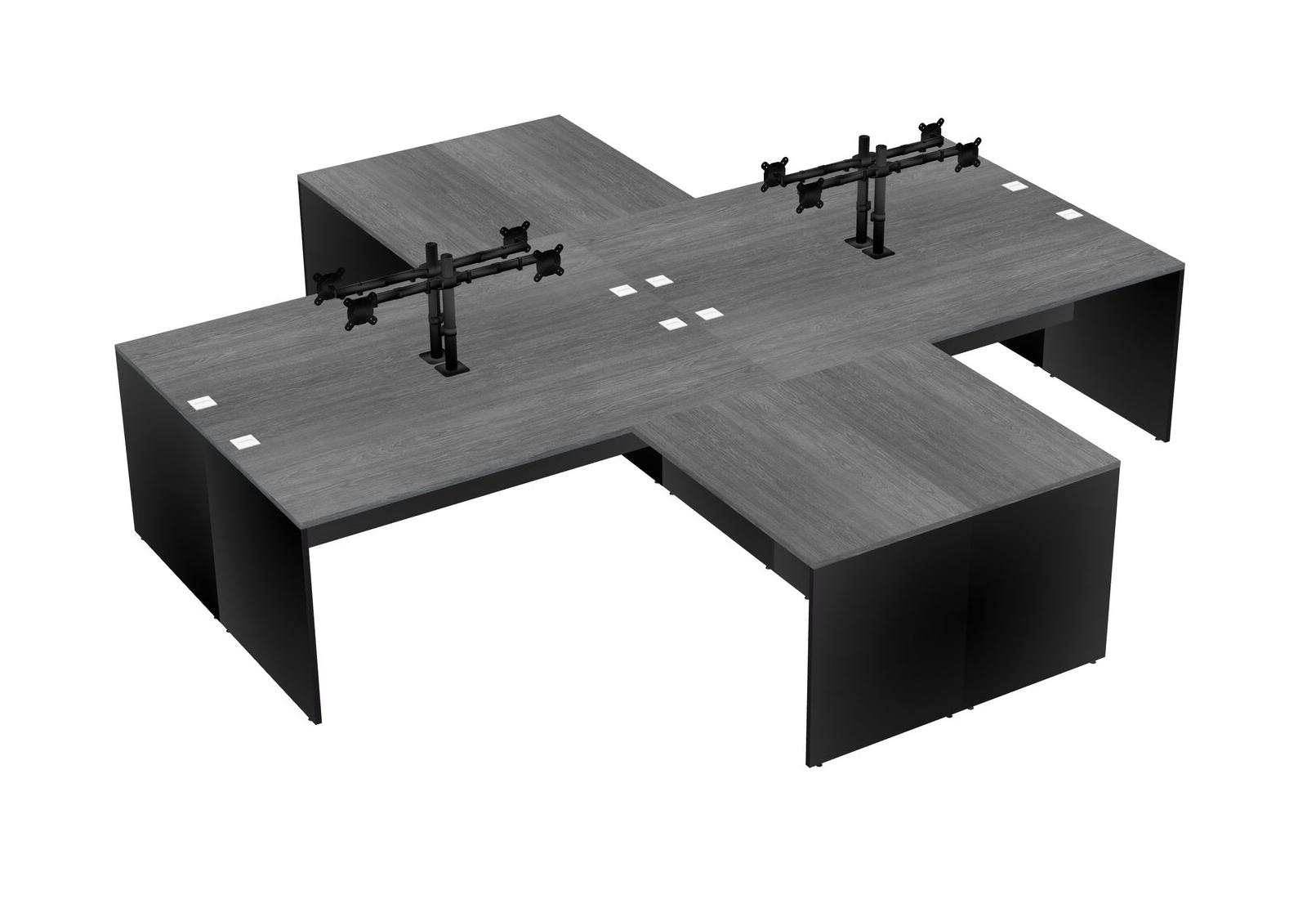 Bureaux Gris En Forme De L Avec Bras D'écran Noir (bras Doubles)