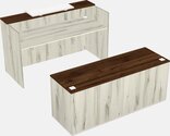 Bureau D'accueil Modulaire En Noyer Columbia + Rangement Latéral Combiné Crédence + Comptoir Flottant