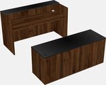 Bureau D'accueil Modulaire Noir + Crédence Combinée De Rangement Latéral