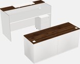 Bureau D'accueil Modulaire En Noyer Columbia + Crédence Combinée De Rangement Latéral + Tiroirs Mobiles En Bois + Comptoir Flottant