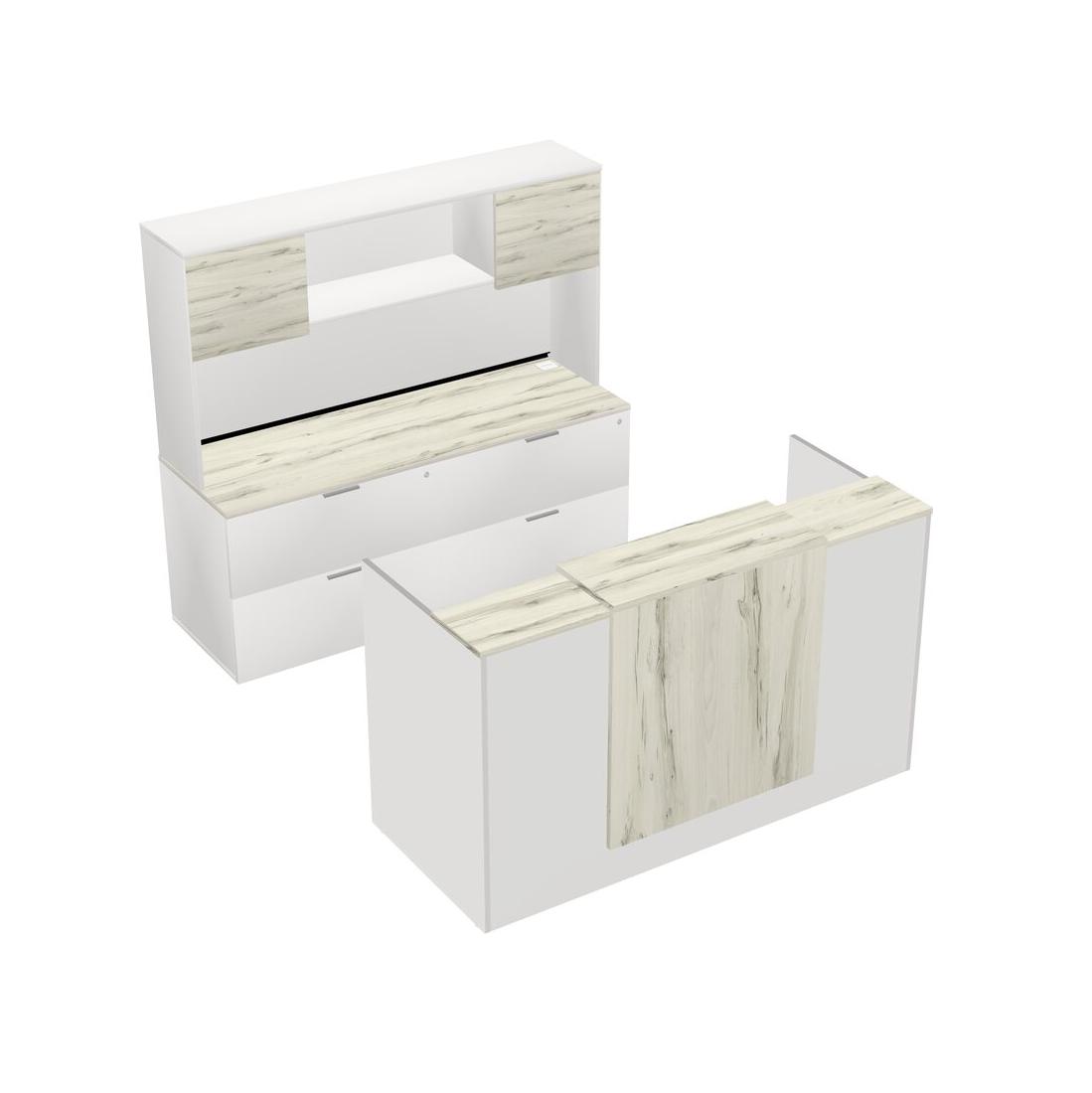 Bureau D'accueil Modulaire Heinne Holz + Crédence à Classeurs Latéraux + Huche + Comptoir Flottant