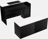 Bureau D'accueil Modulaire Blanc + Crédence à Classeur Latéral + Tiroirs Mobiles En Bois + Comptoir Flottant