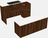 Comptoir D'accueil Modulaire Blanc + Crédence De Rangement + Tiroirs Mobiles En Bois + Comptoir Flottant