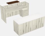Bureau D'accueil Modulaire Blanc + Crédence à Classeur Latéral + Tiroirs Mobiles En Bois + Comptoir Flottant