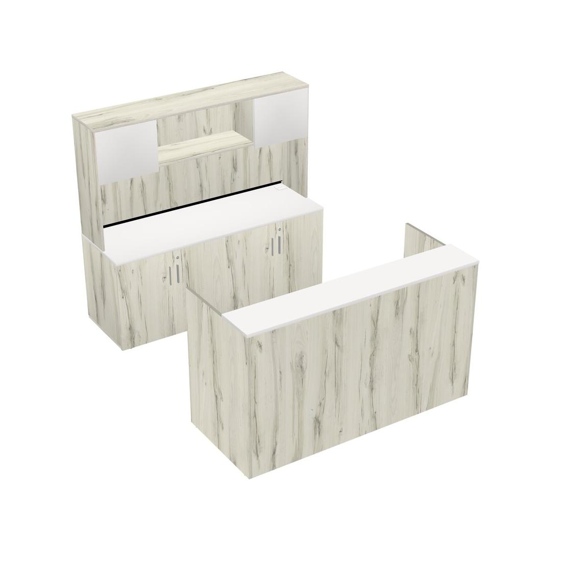Bureau D'accueil Modulaire Blanc + Armoire De Rangement Crédence + Huche