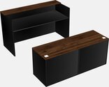 Bureau D'accueil Modulaire En Noyer Columbia + Crédence Avec Armoire De Rangement