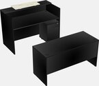 Comptoir D'accueil Modulaire Noir + Tiroirs Mobiles En Bois + Bureau Crédence + Comptoir Flottant