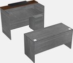 Comptoir D'accueil Modulaire En Noyer Columbia + Tiroirs Mobiles En Bois + Bureau Crédence + Comptoir Flottant