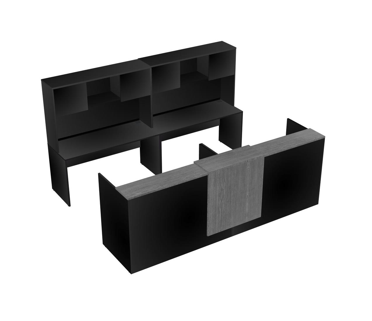 Comptoir D'accueil Modulaire Partagé + Bureau Crédence Avec Comptoir Flottant + Huche + Tiroirs Mobiles En Bois