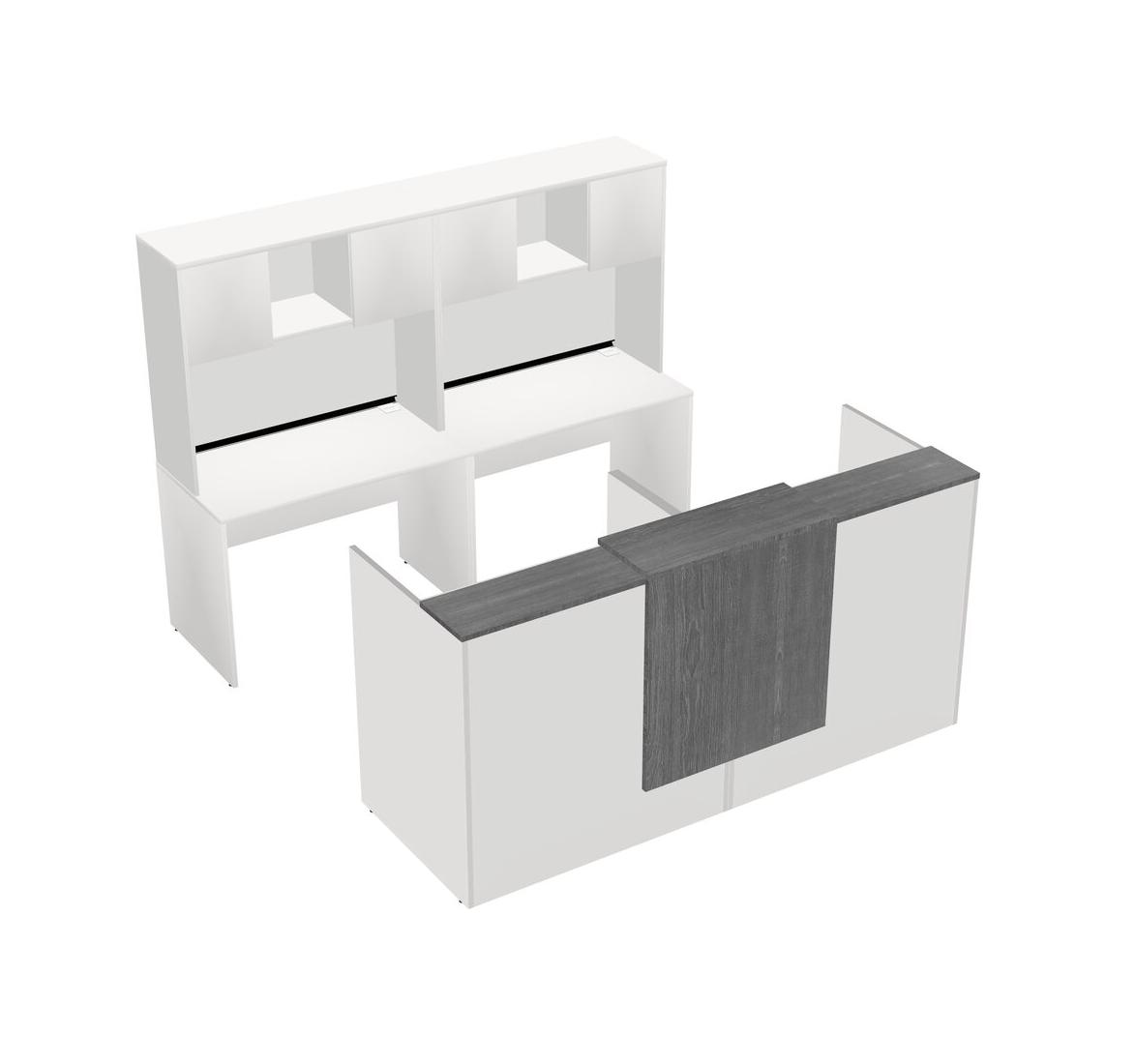 Comptoir D'accueil Modulaire Partagé + Bureau Crédence Avec Comptoir Flottant + Huche + Tiroirs Mobiles En Bois