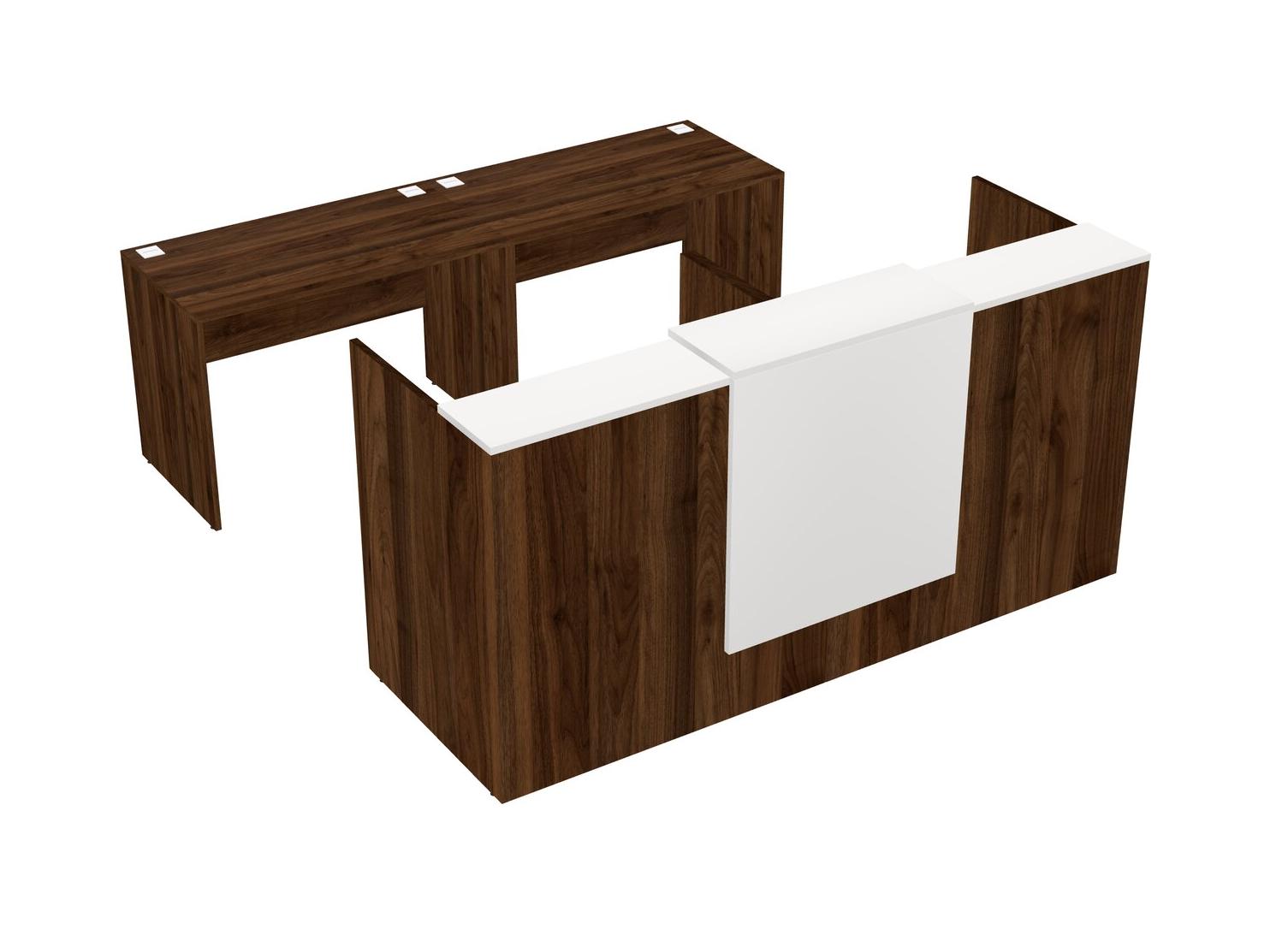Comptoir D'accueil Modulaire Partagé + Bureau Crédence Avec Comptoir Flottant + Tiroirs Mobiles En Bois