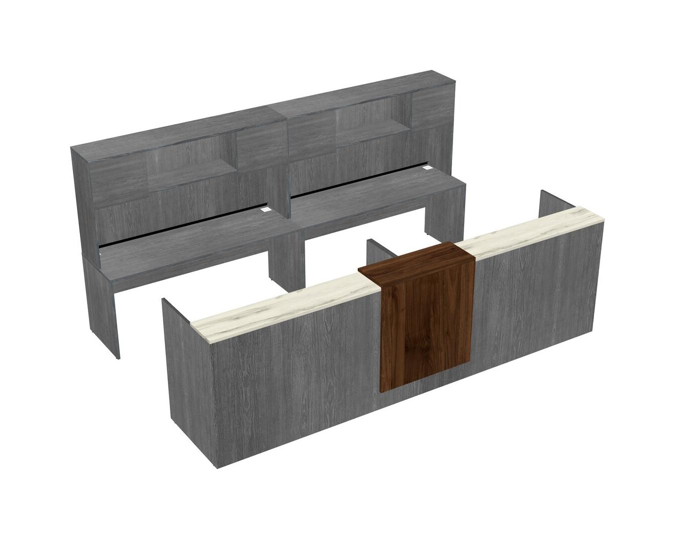 Bureau D'accueil Modulaire Partagé + Bureau Crédence Avec Comptoir Flottant + Huche
