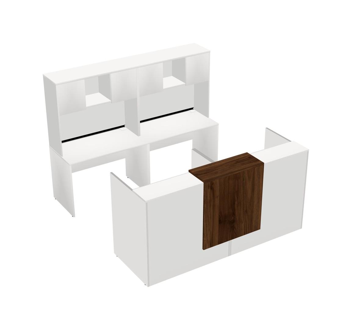 Bureau D'accueil Modulaire Partagé + Bureau Crédence Avec Comptoir Flottant + Huche