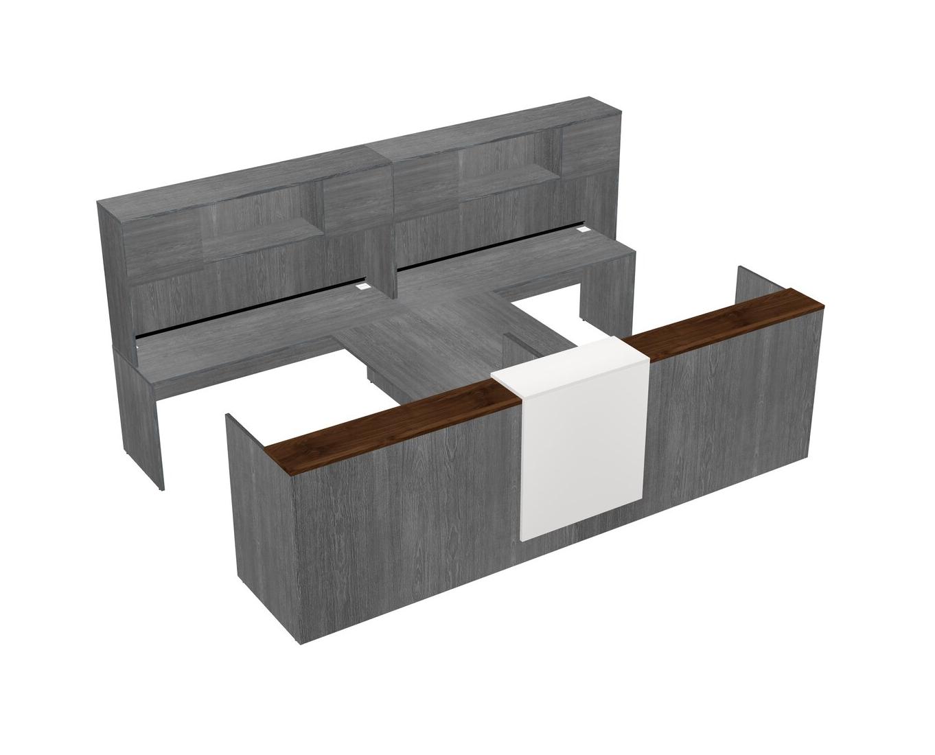 Comptoir D'accueil Modulaire Partagé + Bureau Crédence Avec Comptoir Flottant + Huche + Tiroirs Mobiles En Bois