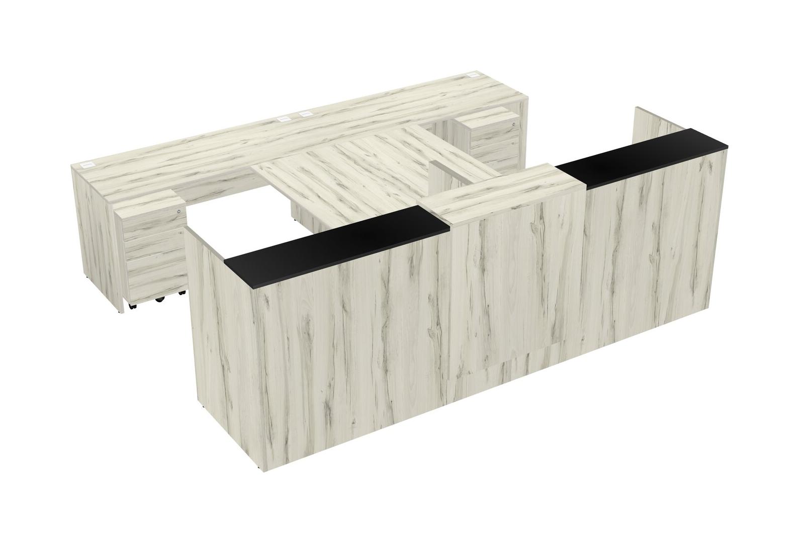 Comptoir D'accueil Modulaire Partagé + Bureau Crédence Avec Comptoir Flottant + Tiroirs Mobiles En Bois