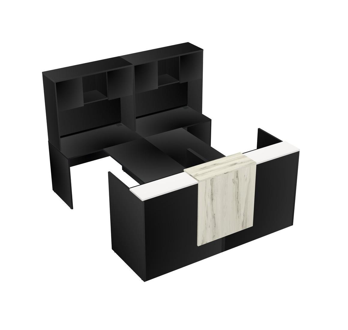Bureau D'accueil Modulaire Partagé + Bureau Crédence Avec Comptoir Flottant + Huche
