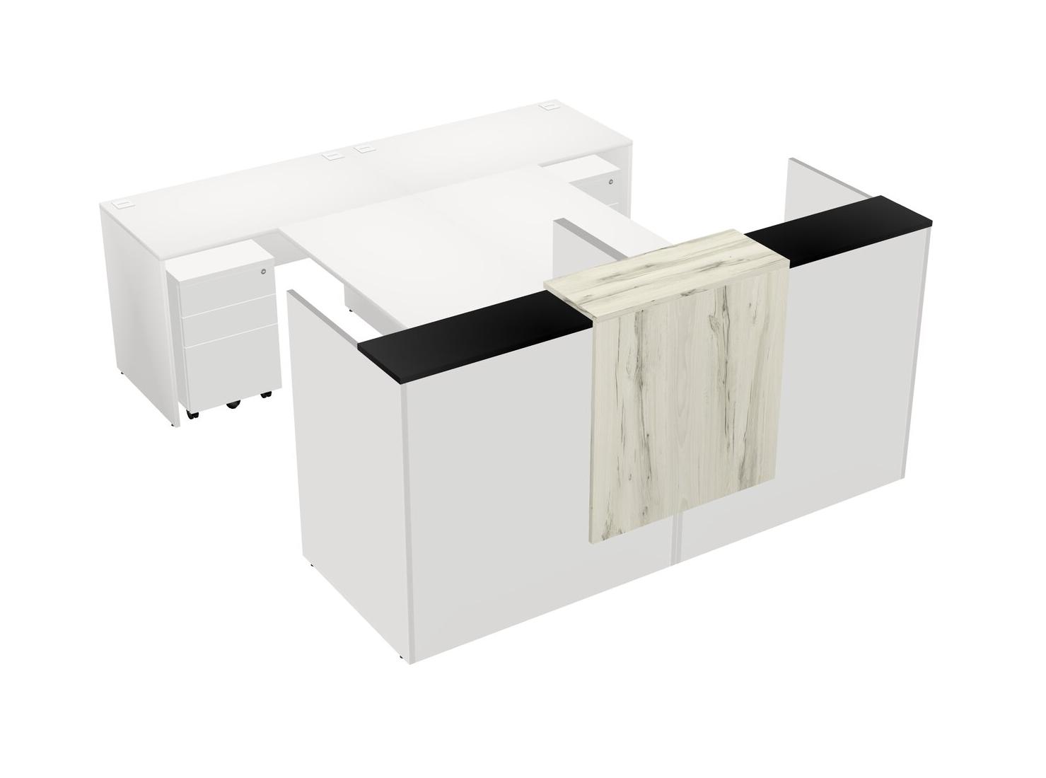 Comptoir D'accueil Modulaire Partagé + Bureau Crédence Avec Comptoir Flottant + Tiroirs Mobiles En Bois