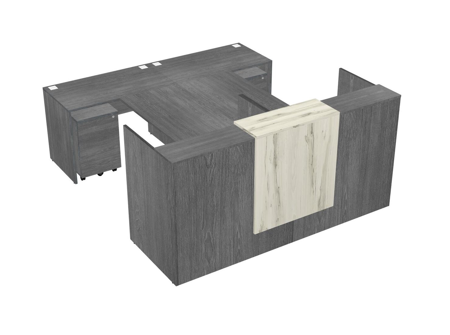 Comptoir D'accueil Modulaire Partagé + Bureau Crédence Avec Comptoir Flottant + Tiroirs Mobiles En Bois