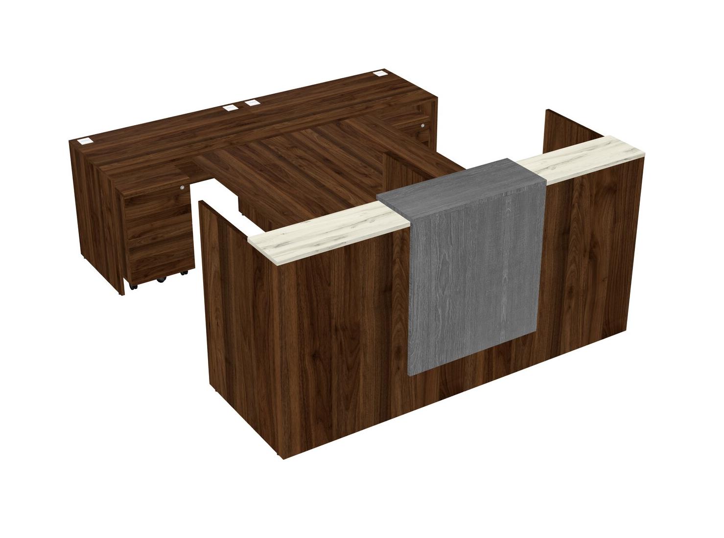 Comptoir D'accueil Modulaire Partagé + Bureau Crédence Avec Comptoir Flottant + Tiroirs Mobiles En Bois