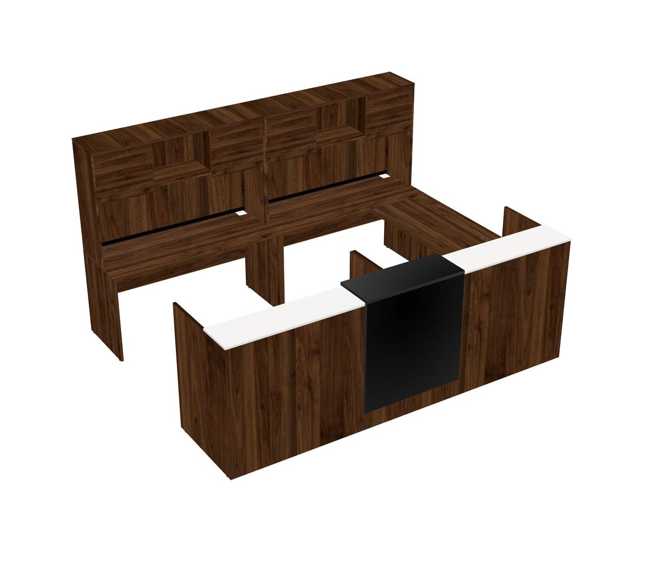 Bureau D'accueil Modulaire Partagé En U Avec Comptoir Flottant + Huche + Tiroirs Mobiles En Bois