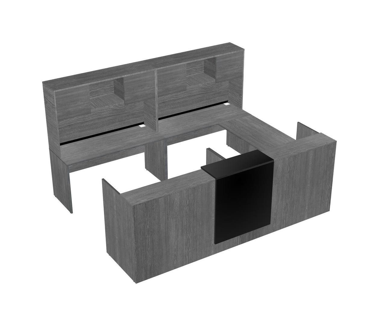 Bureau D'accueil Modulaire Partagé En U Avec Comptoir Flottant + Huche + Tiroirs Mobiles En Bois