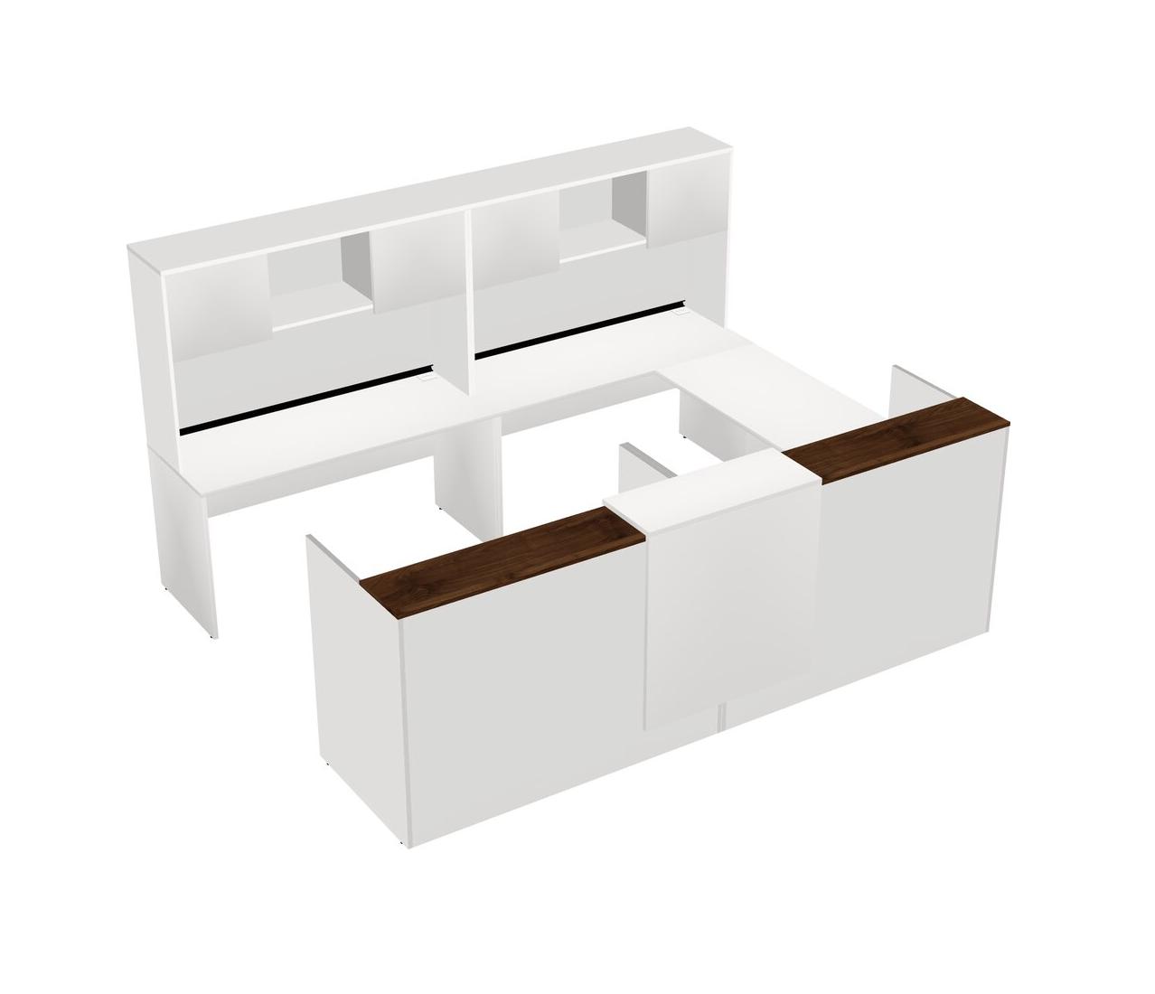 Bureau D'accueil Modulaire Partagé En U Avec Comptoir Flottant + Huche + Tiroirs Mobiles En Bois