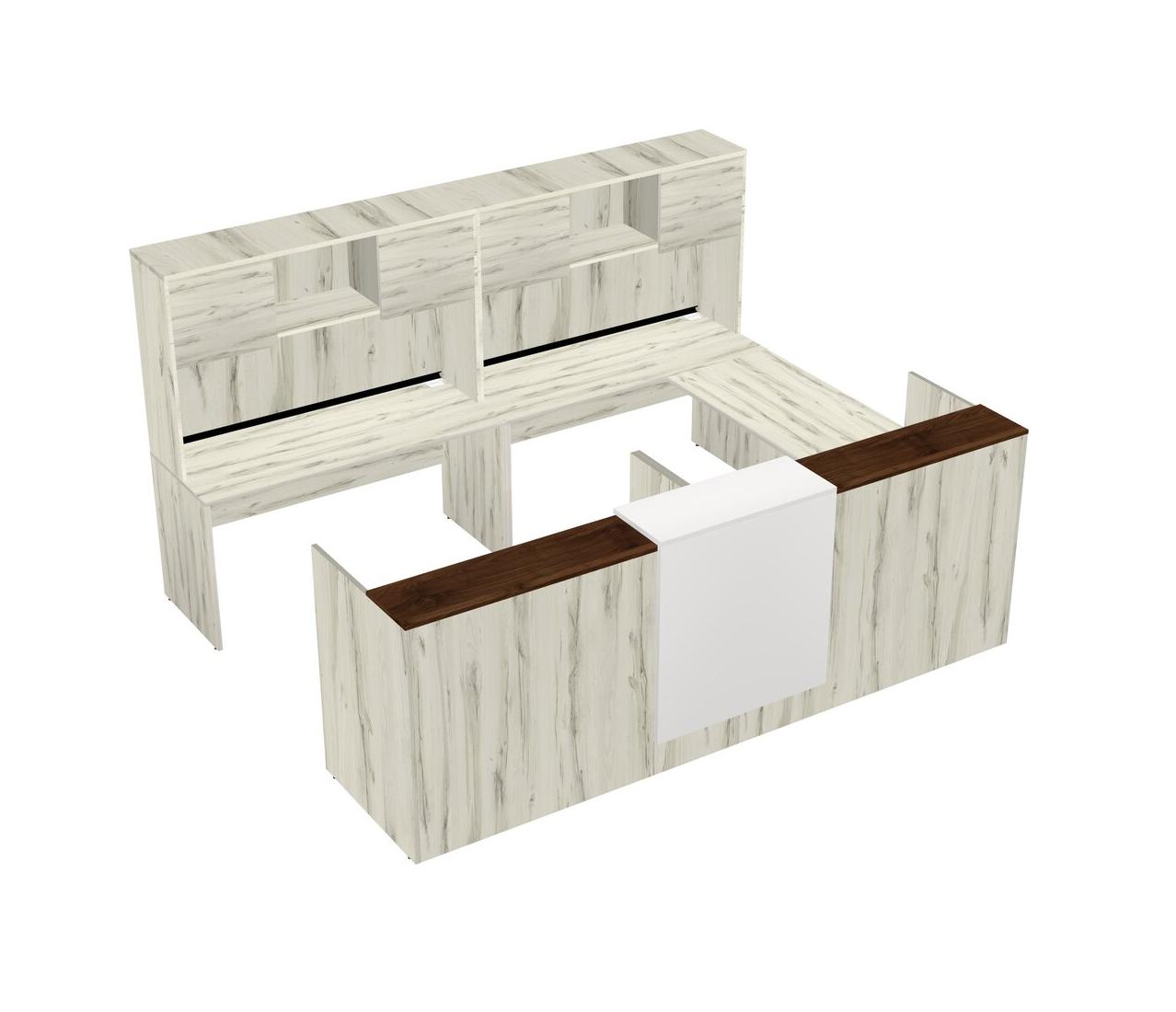 Bureau D'accueil Modulaire Partagé En U Avec Comptoir Flottant + Huche + Tiroirs Mobiles En Bois