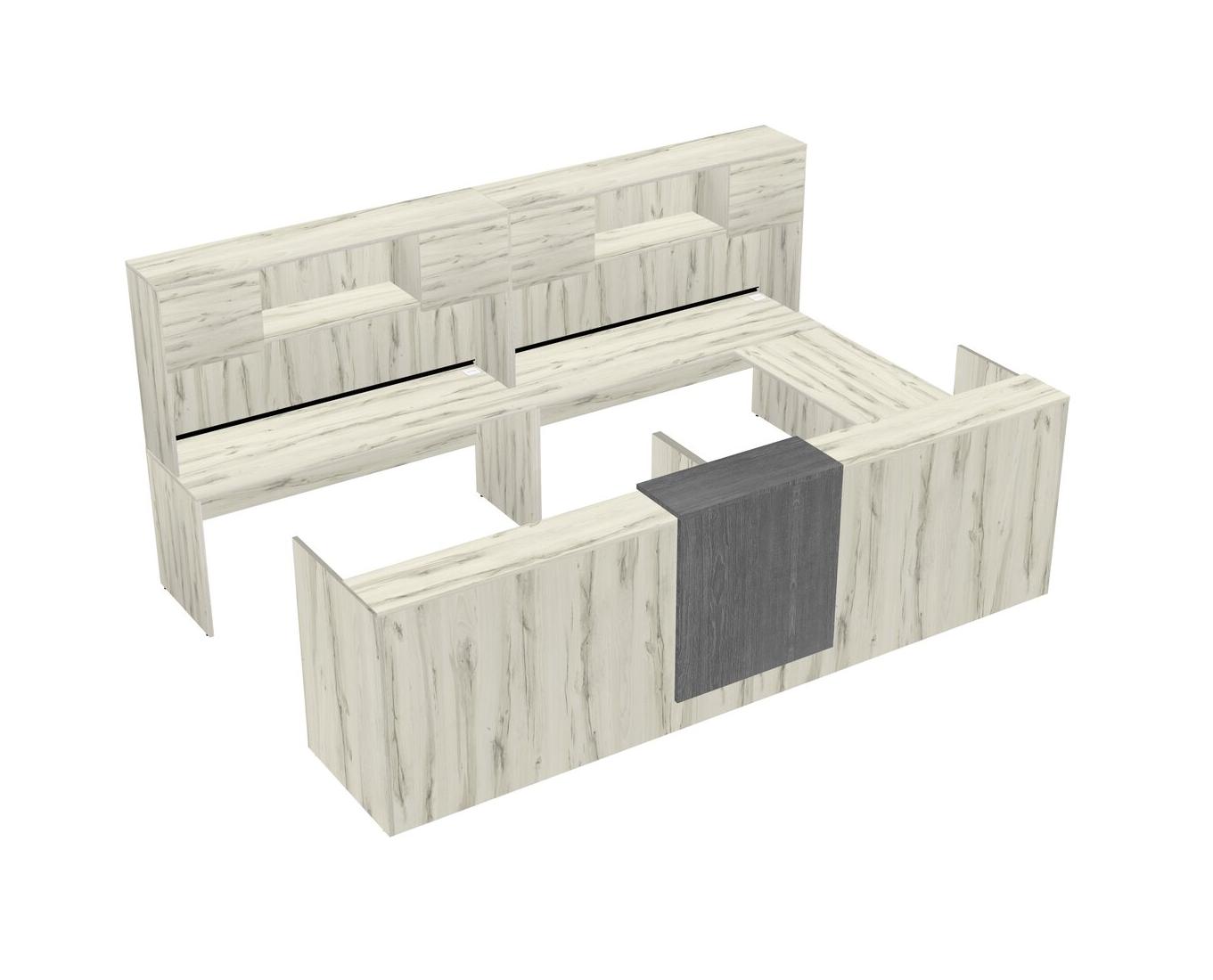 Bureau D'accueil Modulaire Partagé En U Avec Comptoir Flottant + Huche + Tiroirs Mobiles En Bois