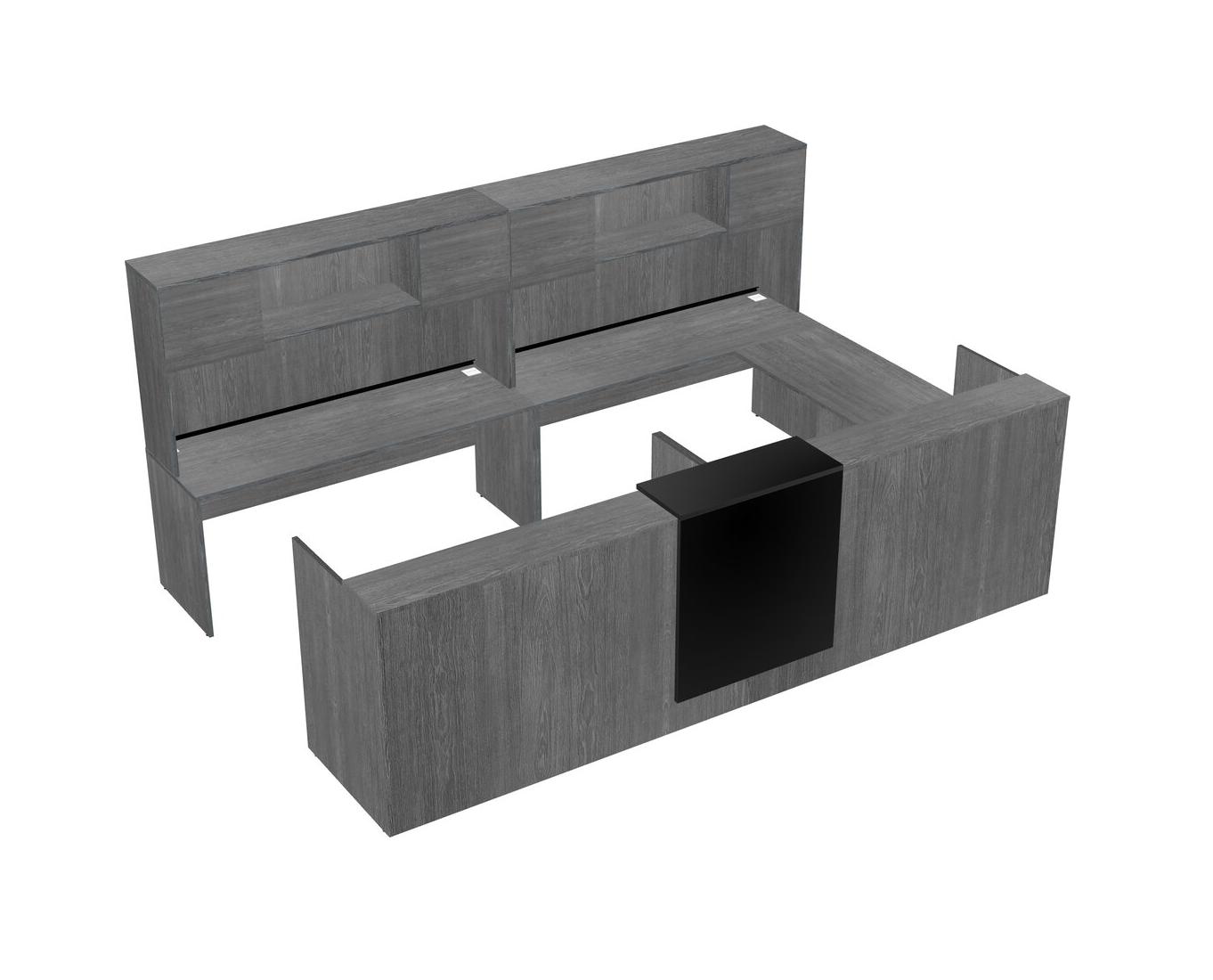Bureau D'accueil Modulaire Partagé En U Avec Comptoir Flottant + Huche + Tiroirs Mobiles En Bois