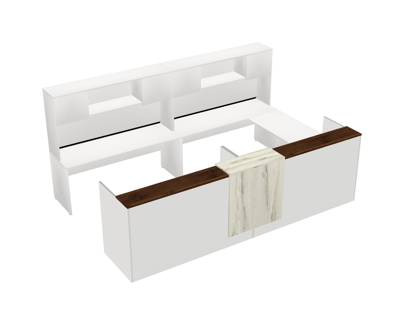 Bureau D'accueil Modulaire Partagé En U Avec Comptoir Flottant + Huche + Tiroirs Mobiles En Bois