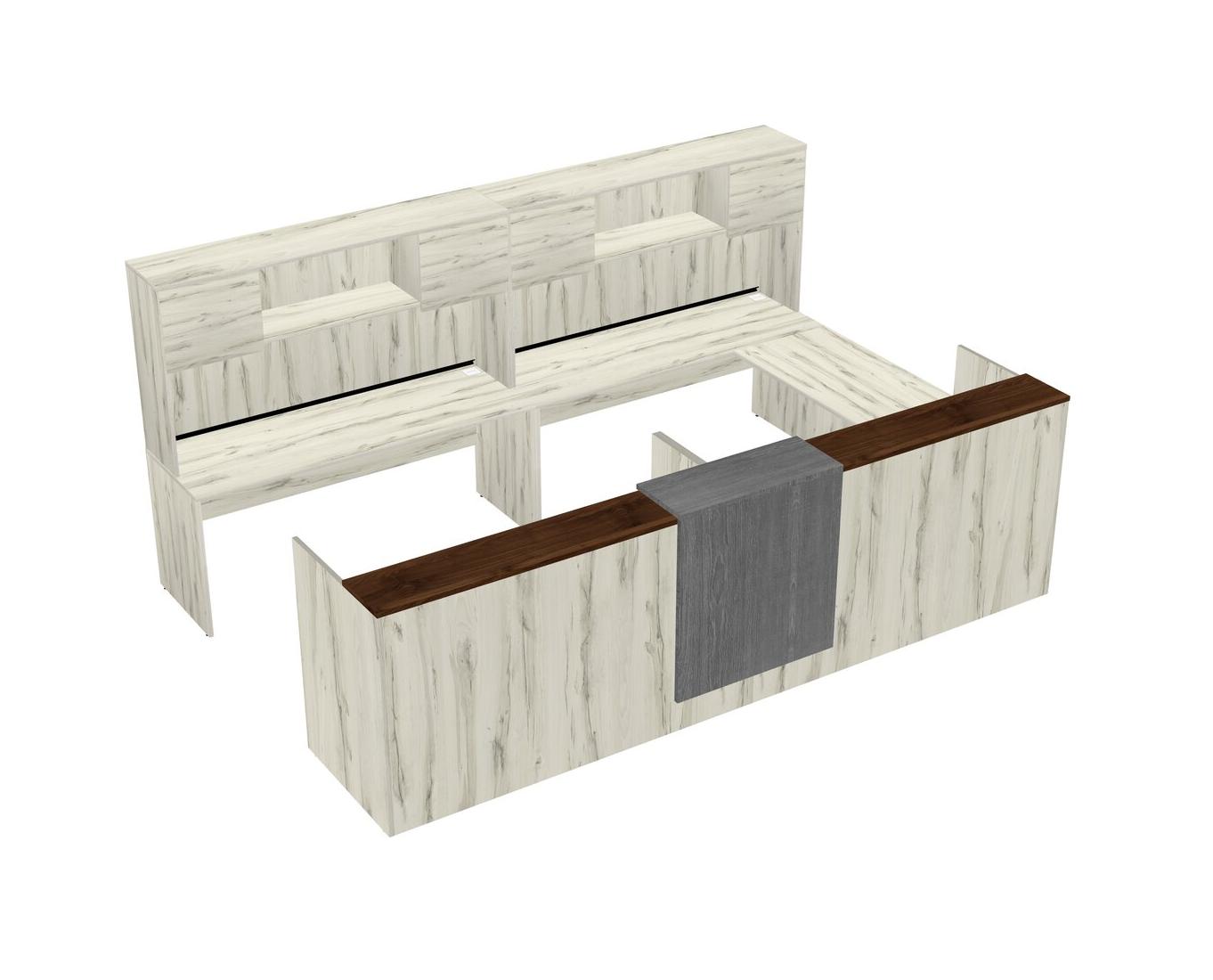 Bureau D'accueil Modulaire Partagé En U Avec Comptoir Flottant + Huche + Tiroirs Mobiles En Bois