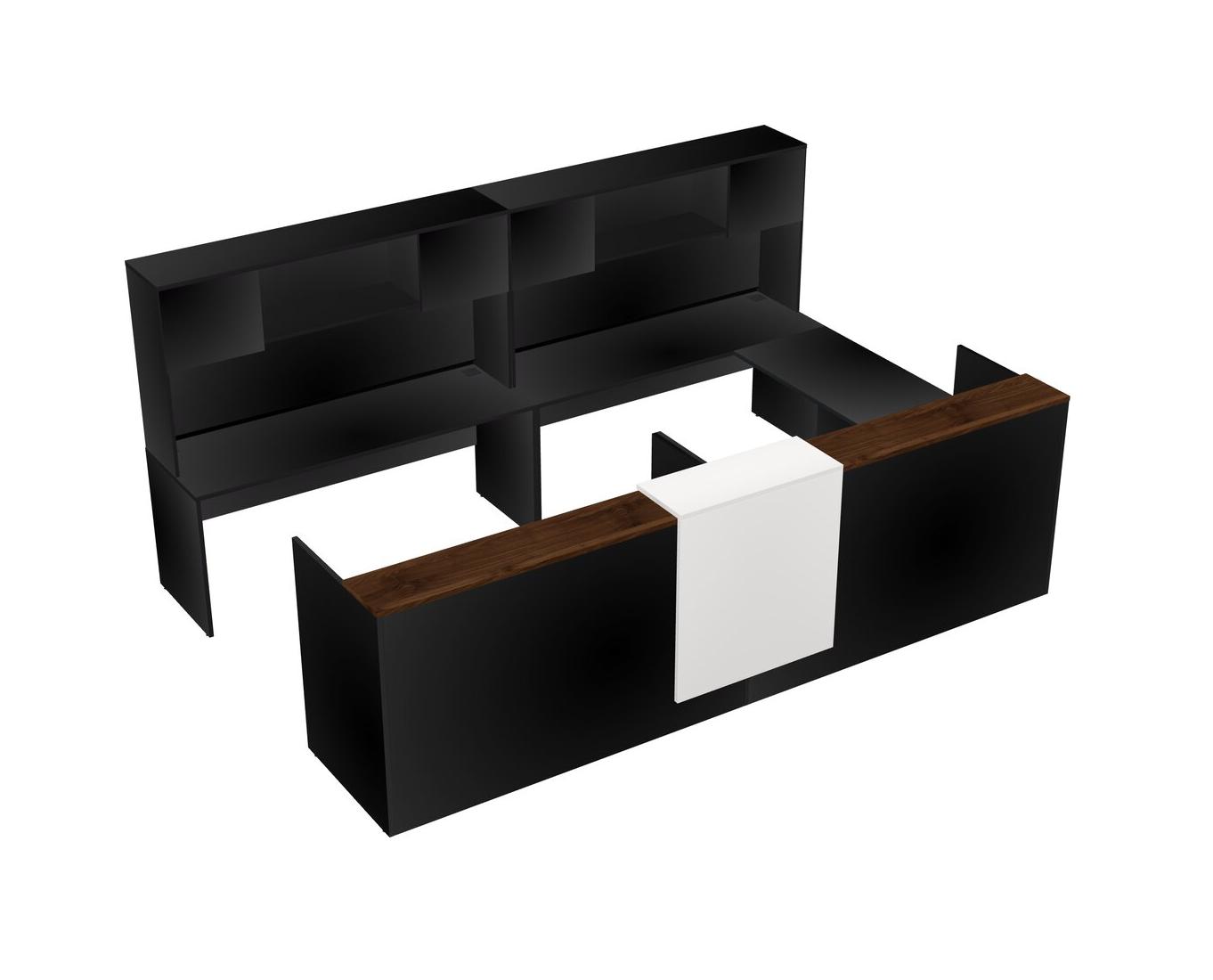 Bureau D'accueil Modulaire Partagé En U Avec Comptoir Flottant + Huche + Tiroirs Mobiles En Bois