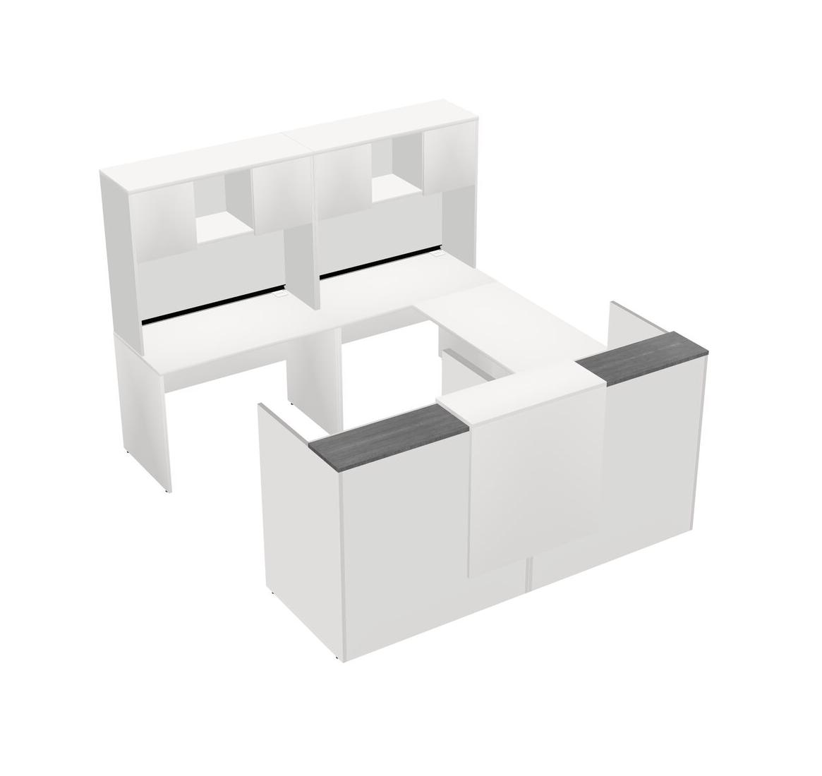 Bureau D'accueil Modulaire Partagé En U Avec Comptoir Flottant + Huche + Tiroirs Mobiles En Bois