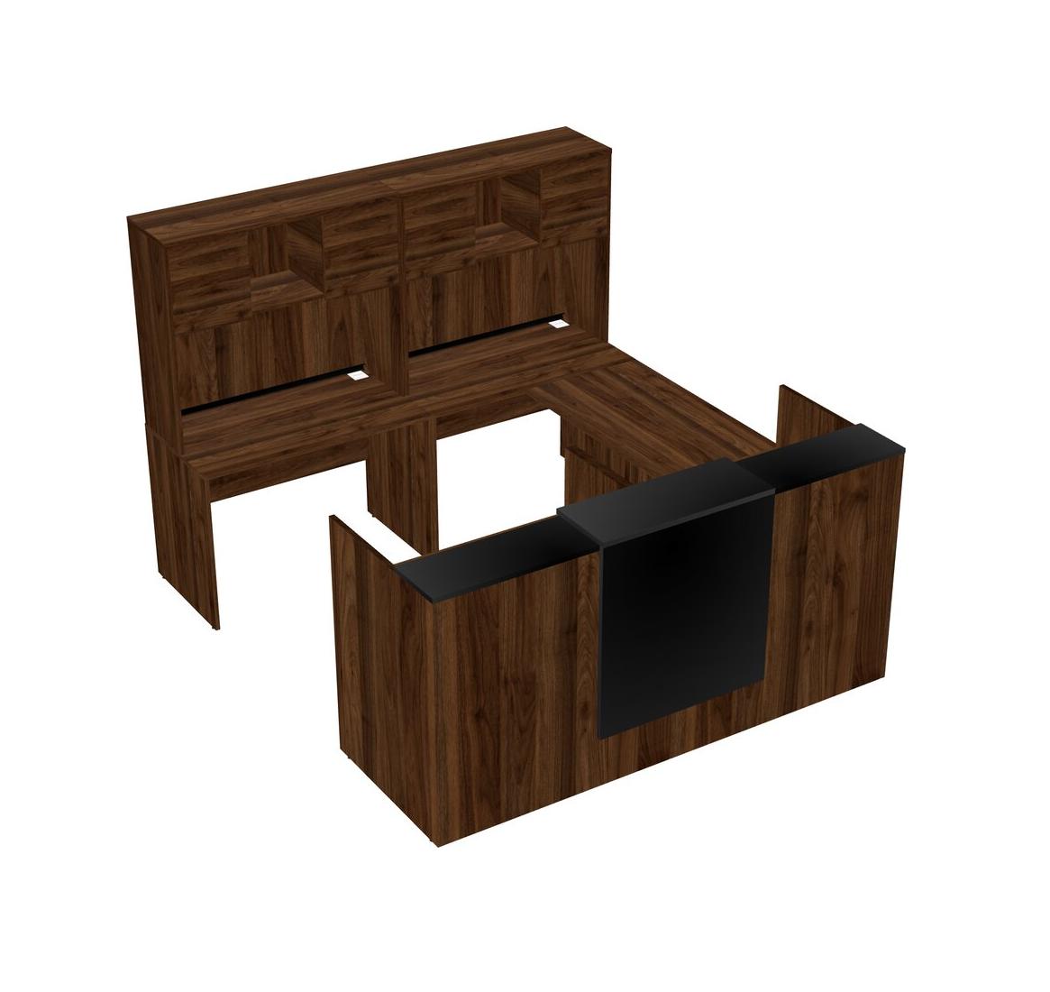 Bureau D'accueil Modulaire Partagé En U Avec Comptoir Flottant + Huche + Tiroirs Mobiles En Bois