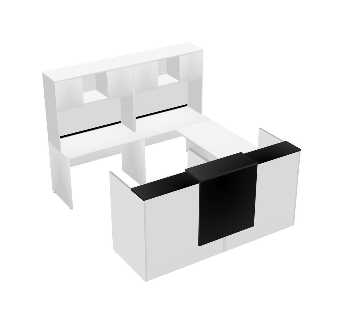 Bureau D'accueil Modulaire Partagé En U Avec Comptoir Flottant + Huche + Tiroirs Mobiles En Bois