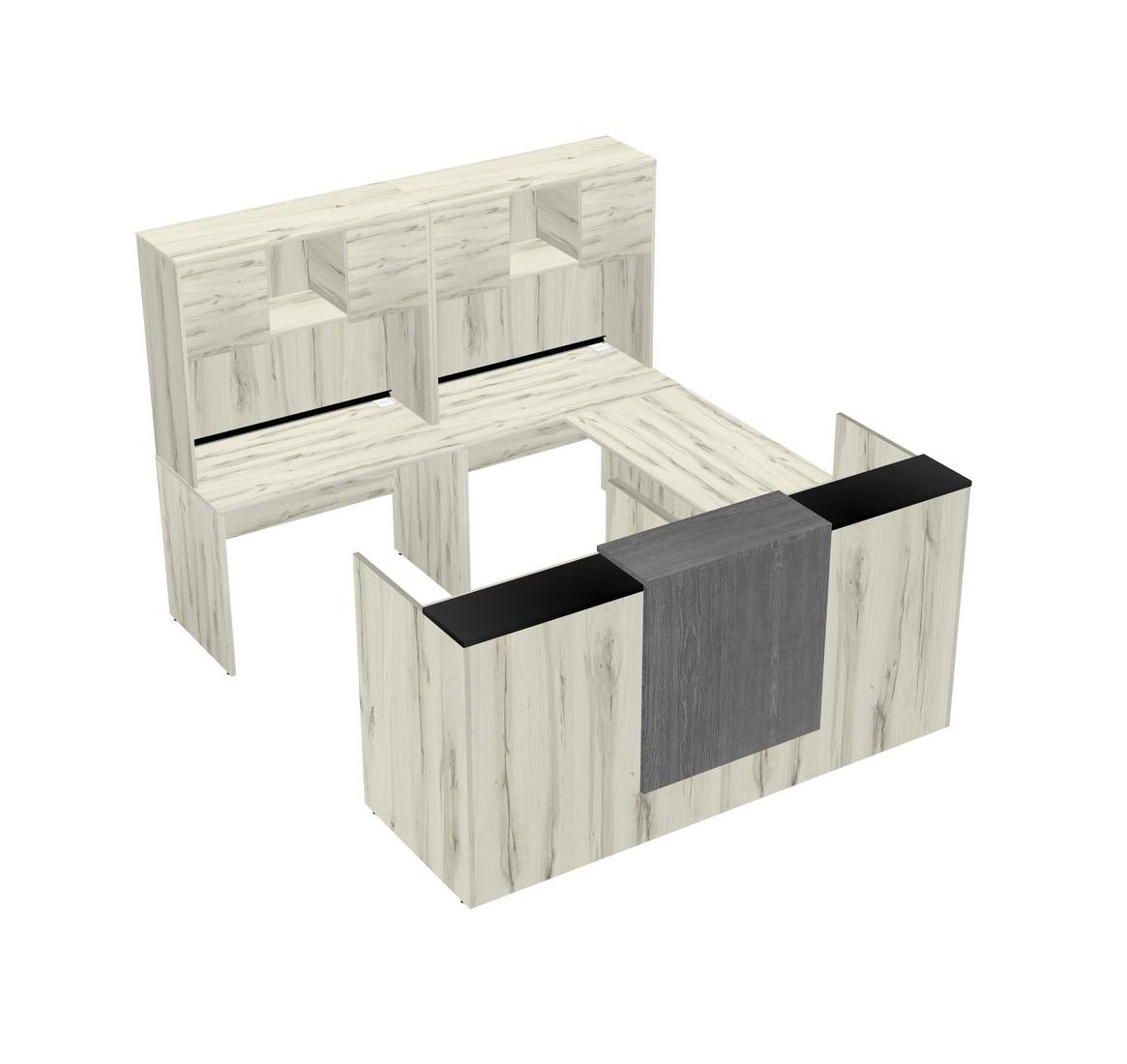 Bureau D'accueil Modulaire Partagé En U Avec Comptoir Flottant + Huche + Tiroirs Mobiles En Bois