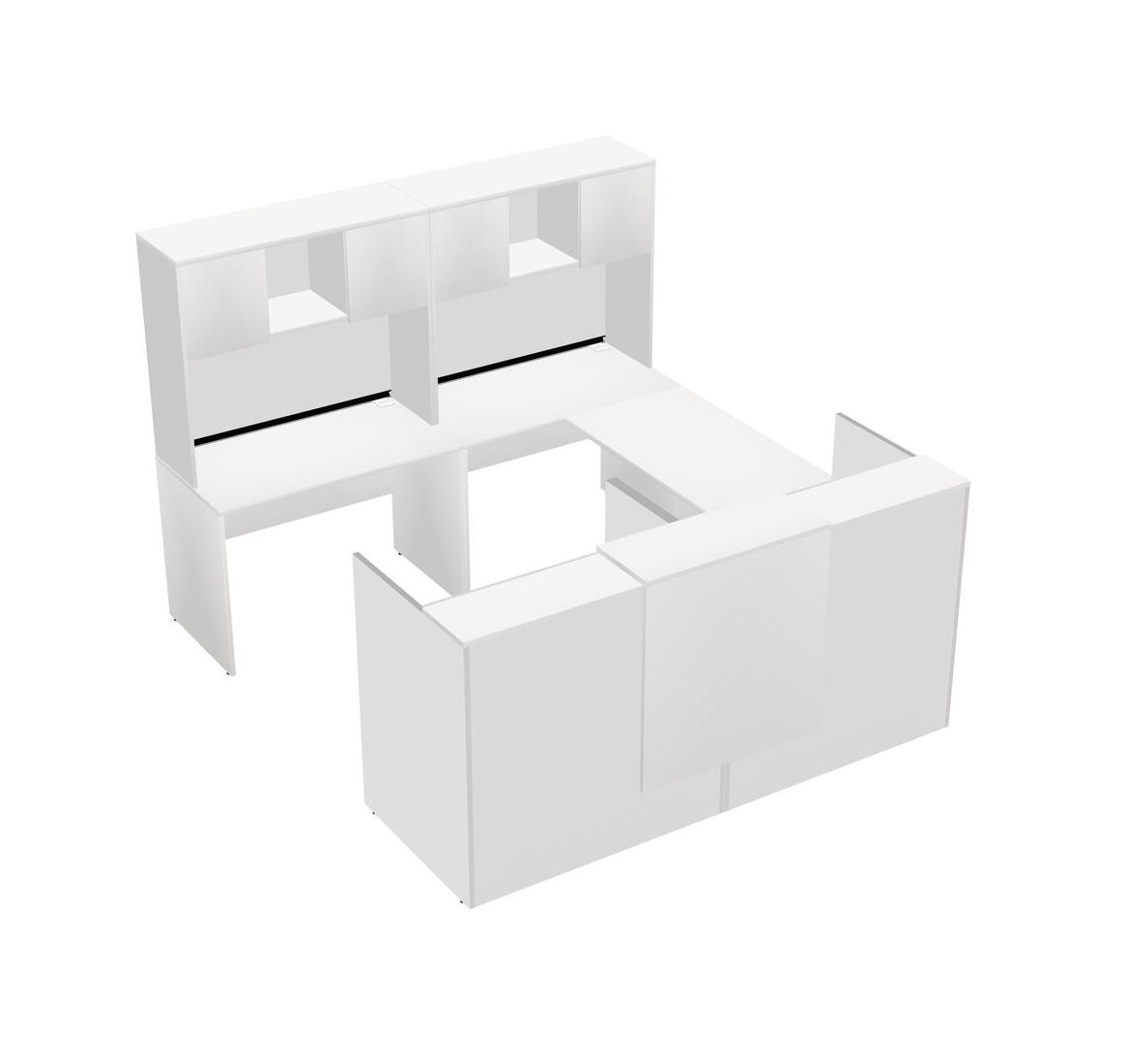 Bureau D'accueil Modulaire Partagé En U Avec Comptoir Flottant + Huche + Tiroirs Mobiles En Bois