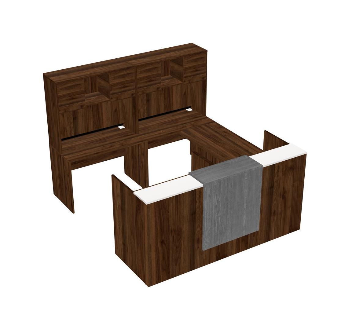 Bureau D'accueil Modulaire Partagé En U Avec Comptoir Flottant + Huche + Tiroirs Mobiles En Bois
