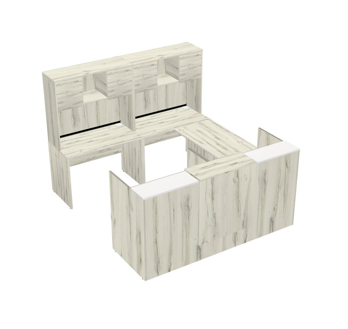 Bureau D'accueil Modulaire Partagé En U Avec Comptoir Flottant + Huche + Tiroirs Mobiles En Bois