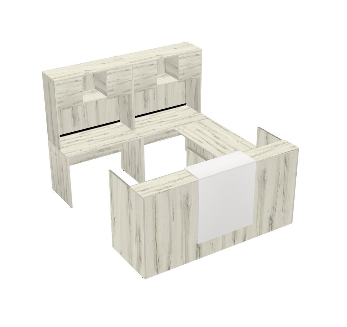 Bureau D'accueil Modulaire Partagé En U Avec Comptoir Flottant + Huche + Tiroirs Mobiles En Bois