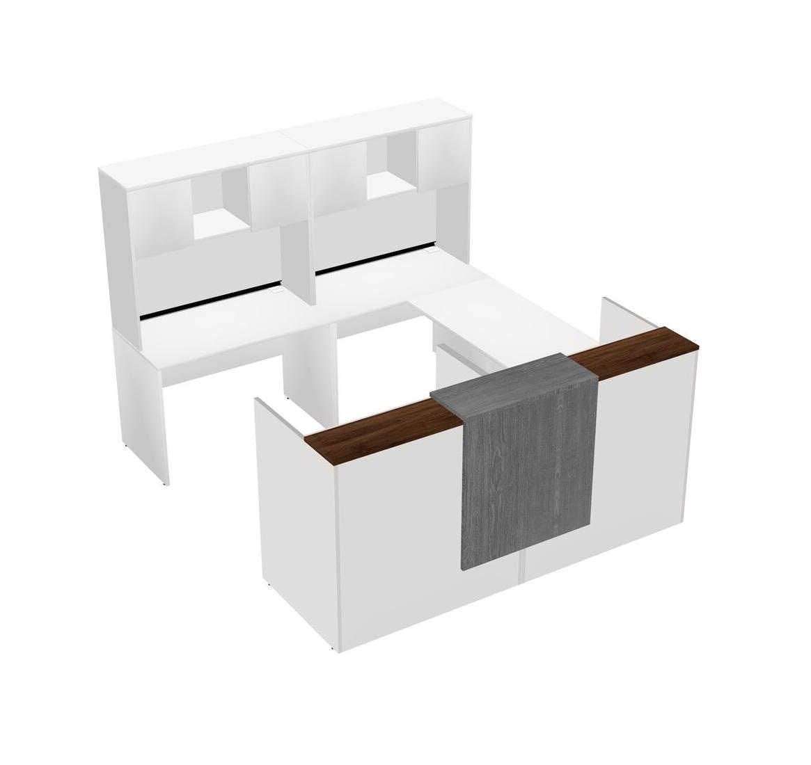 Bureau D'accueil Modulaire Partagé En U Avec Comptoir Flottant + Huche + Tiroirs Mobiles En Bois