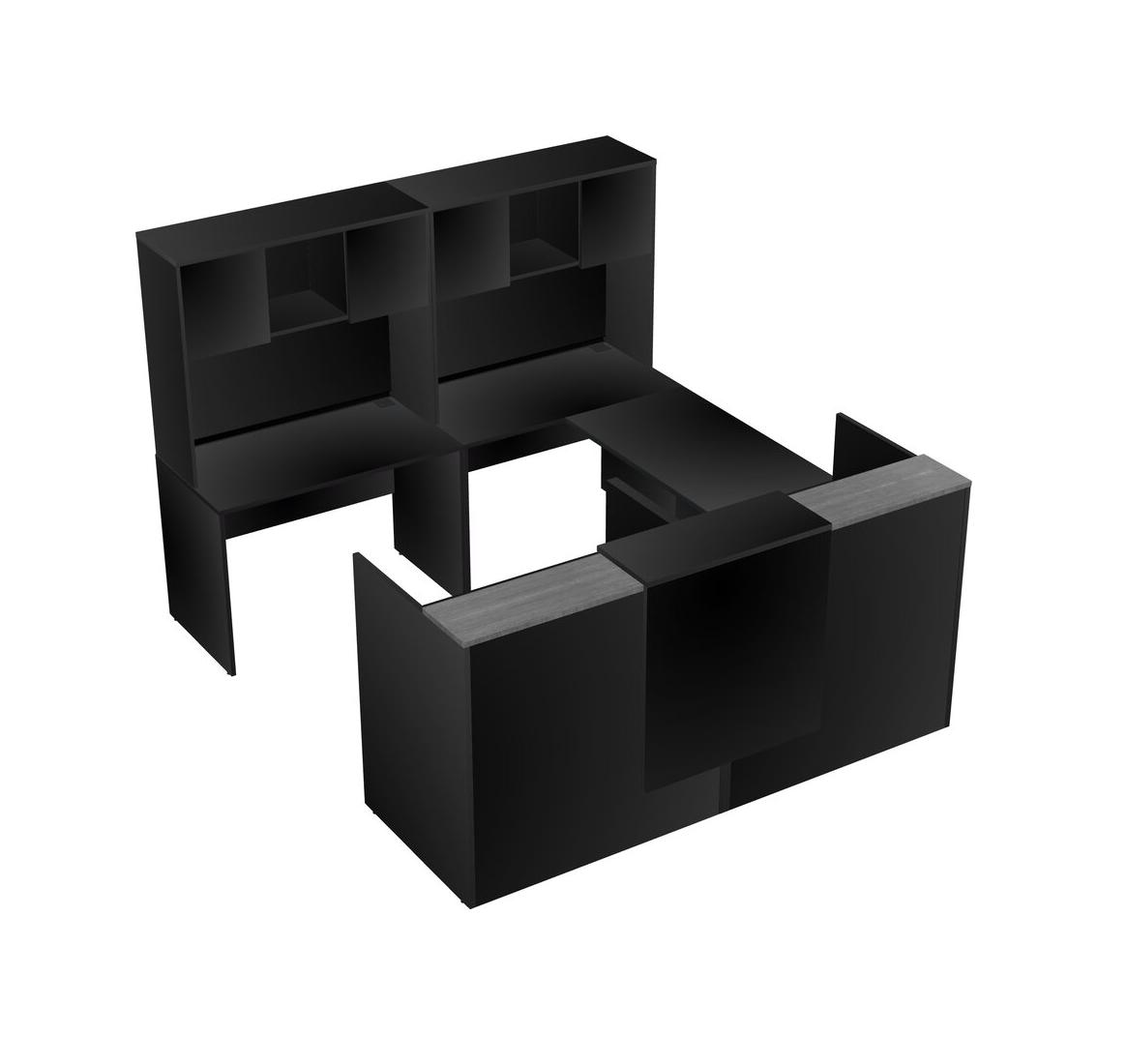 Bureau D'accueil Modulaire Partagé En U Avec Comptoir Flottant + Huche + Tiroirs Mobiles En Bois