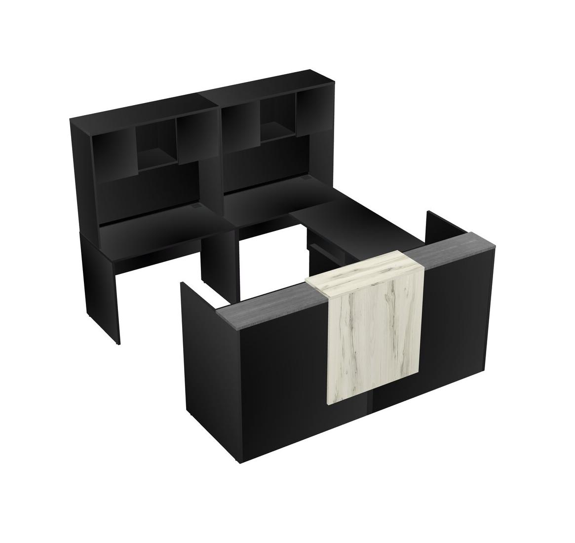 Bureau D'accueil Modulaire Partagé En U Avec Comptoir Flottant + Huche + Tiroirs Mobiles En Bois